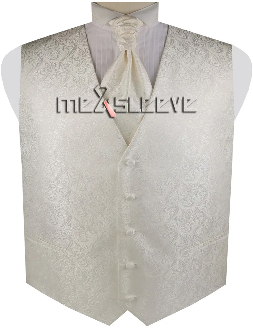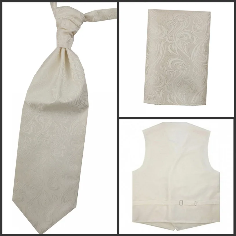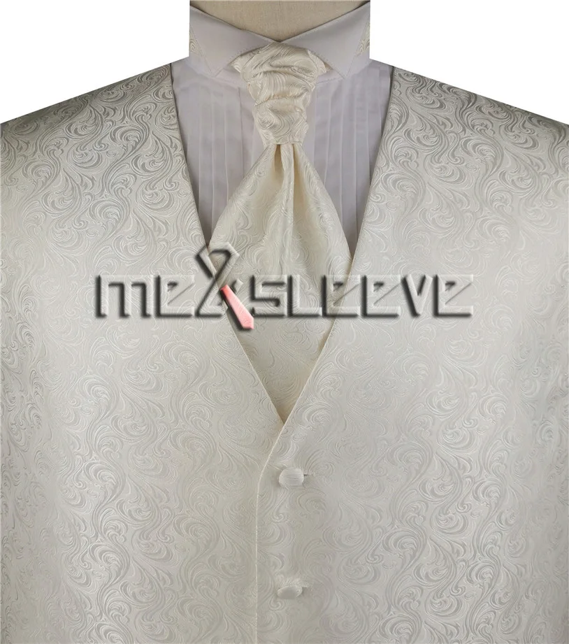 Ivory Even Swirls Tuxedo Polyester V-neck Waistcoat+Cravat+Hanky