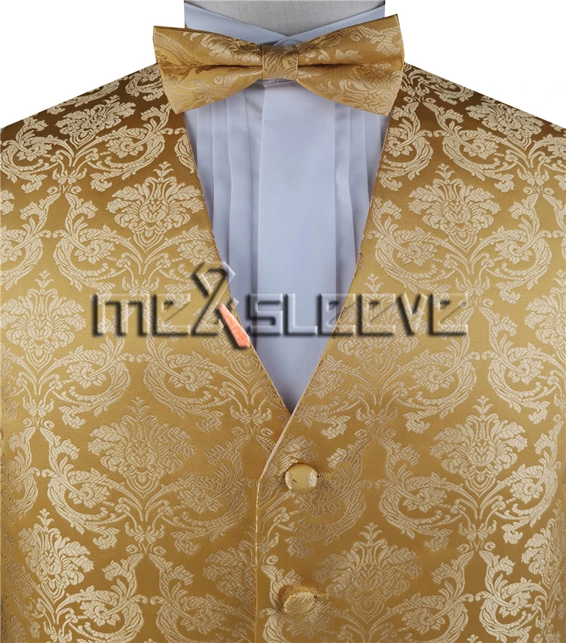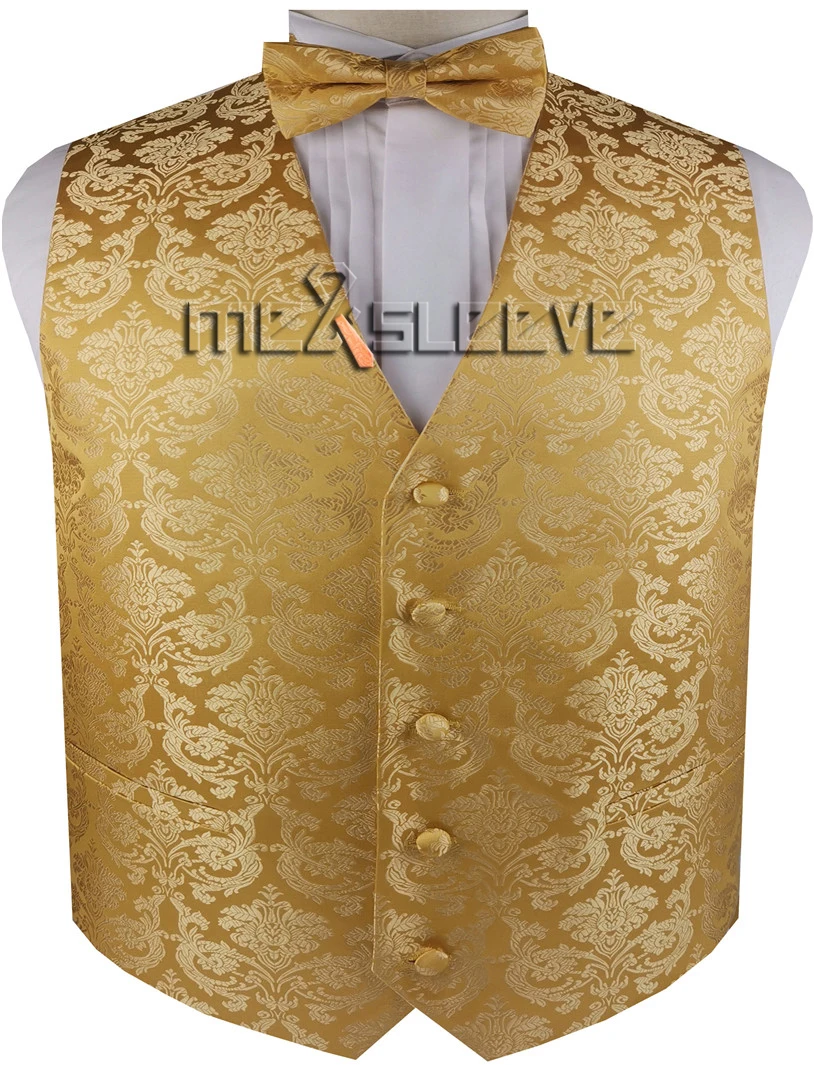 Gold Paisley Classical Waistcoat+Necktie+Bowtie+Hanky for Suit/Dress