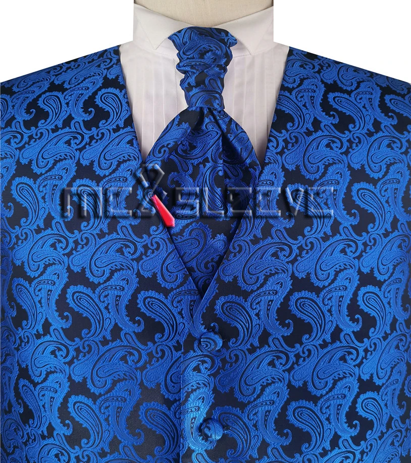 Blue Middle Paisley Classical Tuxedo Poly Waistcoat+Cravat+Hanky